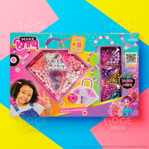 Itens da Embalagem: - 1 Kit de Miçangas Infantil Porta-joias Diamante Faça Você Mesmo Bijuterias Pulseiras Colares Acessórios Makebrinq.