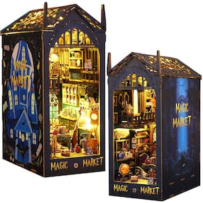 Conteúdo da embalagem: 1 conjunto completo de componentes para kit de recanto de livros DIY (Magic Castle) Observação: cola líquida de silicone e 2 pilhas AA não incluídas. Características do produto: 1. Observe que este é um kit de recanto de livros DIY, o pacote vem com um conjunto completo de componentes prontos para sua montagem. Não tenha medo se você for um iniciante, nosso manual detalhado do produto colorido orienta você passo a passo por todo o processo. O kit de casa em miniatura DIY é adequado para pessoas a partir de 14 anos. 2. Feito de painéis de madeira de corte preciso de alta qualidade, é resistente e fácil de montar. Possui um interruptor de toque para facilitar o controle da iluminação. 3. Mergulhe em um mundo de mistério e magia com nosso kit de casa em miniatura de recanto de livros DIY. Neste mercado mágico, há poções mágicas, espelhos mágicos, relógios mágicos, vassouras voadoras, gatos pretos, corujas, chamas de lareira e muito mais. Este projeto envolvente permite que você construa um recanto mágico em miniatura que adiciona um toque de magia a cada experiência de leitura. Ficará atraente em sua casa. É um ótimo suporte para livros e decoração de casa. - Book Nook para adultos: Este é um kit de recanto de livros DIY, o pacote inclui um conjunto completo de componentes prontos para sua montagem. Kit de casa em miniatura de quebra-cabeça de madeira 3D esperando por sua montagem criativa. O kit em miniatura DIY é adequado para pessoas a partir de 14 anos - Decoração criativa com inserção de estante: feito de painéis de madeira de corte preciso de alta qualidade, é resistente e fácil de montar. Este recanto de livros é uma adição requintada para decoração de casa. Este kit de casa em miniatura ficará atraente em sua casa - Kit de casa de bonecas Magic Castle em miniatura: mergulhe em um mundo de mistério e magia com nosso kit de miniaturas de recanto de livros DIY. Neste mercado mágico, há poções mágicas, espelhos, relógios, vassouras voadoras, gatos, corujas, chamas de lareira, etc - Ampla aplicação: o quebra-cabeça de madeira 3D montado em miniatura pode ser utilizado para decoração de livros, decoração de casa, decoração de inserção de estante de livros, etc. Este kit em miniatura é uma maneira esplêndida de interagir com adolescentes e adultos. É uma escolha de presente ideal - Dicas: Observação: você precisará fornecer cola líquida de silicone e 2 pilhas AA sozinho, pois os regulamentos de transporte aéreo proíbem sua inclusão. Se você encontrar algum problema durante a montagem, sinta-se à vontade para entrar em contato. Vamos resolver o mais rápido possível - Luz do sensor humano: o modo de controle de luz do kit de casa em miniatura do recanto de livros é a luz do sensor humano. A luz do sensor humano acende quando alguém se aproxima de 1 a 2 metros e desliga automaticamente após 1-2 minutos