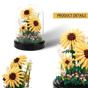 Kit de modelos de construção DAFDAG Building Block Sunflower Building Block Conjunto de microblocos com caixa de exibição transparente