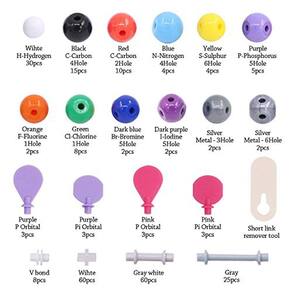 Kit modelo molecular Swpeet 252 Pcs para professor de modelo molecular inorgânico e orgânico e kit estudantil O que tem na caixa? Este kit modelo molecular tem um total de 252 peças, incluindo um removedor de link: 86 Átomos & 153 Links & 12 itais & 1 Ferramenta de Removedor de Link Curto. Todas as peças são feitas de plástico durável e resistente que são codificados por cores para padrões nacionais. Este é um ótimo conjunto para alunos e professores para auxiliar nos estudos do curso! Com este conjunto, é fácil construir modelos para Química Orgânica e Inorgânica! Construa modelos como: alkanes, alkenes, alkynes, halidos alky, álcoois, éteres, aldeídos, cetonas, ácidos carboxílicos, nitridas, aminas, ésteres, compostos aromáticos, compostos heterocíclicos e muito mais. Especificação: Material: PP (atômico), LDPE (link), ABS (caixa) Tamanho: Diâmetro do hidrogênio: 17 mm Diâmetro de outros átomos: 23,5 mm Caixa de plástico: 23,5×17×3,5cm / 9,25×6,69×1,38 polegadas Cor: Diferentes átomos, cores diferentes Peso: Incluindo caixa total 0,6 kg Pacote incluído: ? H-Hidrogênio - 1 - Branco - 30? C-Carbono - 4(109°28') - preto -15 ? O-Oxigênio - 2(105°) -Vermelho - 10? N-Nitrogênio -3(107°)- Azul- 4 ? S-Enxofre -6(90°)- Amarelo- 4P-Fósforo?- 5(120°/90°)- Roxo -5? F-Fluorine -1- Laranja - 2 ? Cl-Cloro -1- Verde- 8 ? Br-Bromine -5(120°/90°)- Azul escuro- 2 ? I-I-Iodo -5(120°/90°)- Roxo escuro- 2 ?Metal -3(107°)- Prata- 2 ? Metal -6(90°)- Prata- 2 Ligações - Cor - Comprimento(mm) - Qty. ? P itals - Roxo - 36 - 3 ? P itais - Rosa - 36 - 3 ? Pi itais - Roxo - 36 - 3 ? Pi itais - Rosa - 36 - 3 ? Médio (single, rígido) - Branco cinza - 27 - 60 ?Longo (duplo/triplo, flexível) - Cinza - 43 - 25 ? Curto (para modelos de preenchimento de espaço) - Translúcido - 11 - 60 ? V de ligação (para modelos de preenchimento espacial) - Branco - 13 - 8 ? 1× Ferramenta ? de removedor de link curto 1× caixa de plástico ABS (tamanho: 23,5 * 17 * 3,5 cm)