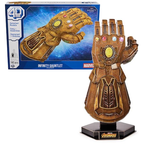 - Réplica detalhada: embarque em uma aventura de construção com um quebra-cabeça 3D preciso de filme. Esta luva infinita de Thanos 4D Build inclui todos os detalhes dos filmes dos Vingadores da Marvel que você ama, além de um suporte para quando estiver completa