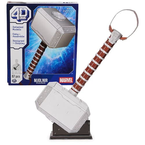- RÉPLICA DETALHADA: embarque em uma aventura de construção de super-heróis com um quebra-cabeça 3D da Marvel Toys, preciso para filmes. Este martelo Thor Mjolnir 4D Build inclui todos os detalhes que você adora, além de um suporte robusto para quando estiver pronto!