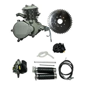 Kit de Motor a Gasolina para Bicicleta 80cc Kit de motor a gasolina de 02 tempos único cilindro - 80CCAtenção O equipamento deve ser montado por especialista. Sempre deve se atentar as leis de trânsito local.Sempre utilize capacete e equipamentos de segurança. Capacidade do Tanque de Combustível 02 litros.Consumo de Combustível 2 litros / 100KmContém todas as ferramentas para montagemKit de tanque completoRolamentosKit de maneteConj de parafusos porcasCoroa e correnteCabos de embreagem e aceleradorEscapamento padrãoProteção da correnteConj CarburadorIgnição CDI e corte de IgniçãoTensionador da correnteSuporte de fixação2 tempos um cilindro filtro de ar. 47x40mm Potência 2.3 KW / 6000 RPMIgnição CDIMistura 161 300Km / 251 500KmVela de Ignição Z4CVelocidade Máxima 40Km/h