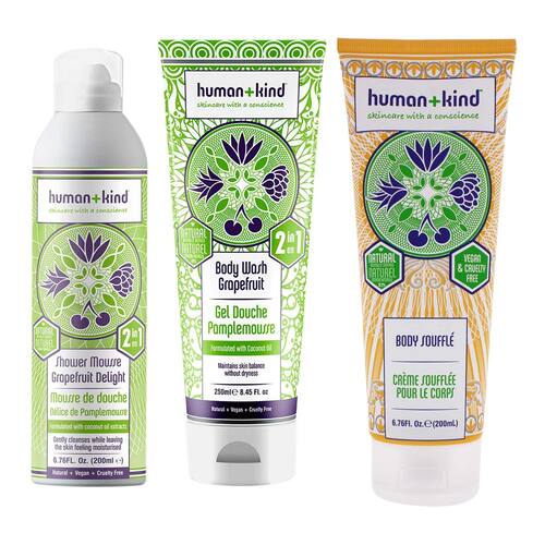 - Batido levemente para proporcionar o máximo de gentileza, o suflê corporal leve e fofo da Human+Kind é rapidamente absorvido para deixar sua pele superhidratada e macia o toque.