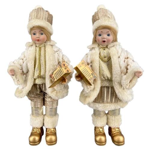 Kit de Natal Crianças Creme/Dourado Grande Musical - 45 cm Adicione um toque de encanto e sofisticação à sua decoração natalina com o Kit de Natal Crianças Creme/Dourado Grande Musical de 45 cm. Este conjunto encantador apresenta figuras de crianças em tons elegantes de creme e dourado, trazendo uma atmosfera de luxo e alegria para qualquer ambiente. Com sua função musical integrada, este kit não só enfeita o espaço, mas também preenche o ambiente com a melodia mágica do Natal, tornando-o perfeito para lojas e lares. Características do Produto: Dimensões: 45 cm de altura, 12 cm de comprimento, 32 cm de largura. Peso: 2,050 kg, garantindo estabilidade e durabilidade. Material: Tecido de alta qualidade e resina resistente, proporcionando um acabamento refinado e duradouro. Função Musical: O kit inclui uma função musical que enriquece a experiência decorativa, criando um ambiente festivo e envolvente. Design Elegante: As cores creme e dourado oferecem um visual sofisticado e luxuoso, ideal para quem busca uma decoração natalina de alto padrão. Detalhes Ricos: Cada figura é detalhadamente elaborada, capturando a beleza e a inocência do Natal em suas expressões e vestimentas ornamentadas.