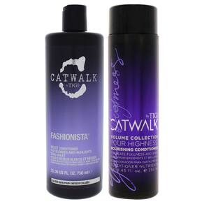 Condicionador violeta para loiras, mechas e cabelos não pigmentados da TIGI Catwalk. Este condicionador realça os tons de loiro e reduz os efeitos de tons de bronze. Com um complexo iluminador de violeta, extrato de pérola e leite de arroz, ele aumenta os tons frios e oferece um brilho cativante aos cabelos loiros, grisalhos ou brancos. O condicionador violeta Tigi Catwalk Fashionista aumenta os tons frios, reduz os tons de bronze e oferece um brilho cativante. Protege o cabelo do calor.