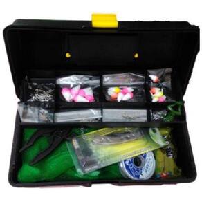 Kit de pesca maleta com acessórios linha boia vários itens Caixa completa para pescar Além dos itens básicos da pescaria com uma quantidade maior como anzol 50 und. , boia 09 und , linha, ele vem com alicate pega peixe o que é essencial na pescaria na hora de retirar o peixe da agua que facilita bastante , vem também com suporte de chão para você colocar sua vara e deixar ela em espera até o peixe puxar a isca, inclui também um para cortar a linha na hora de amarrar o anzol entre outras coisas, sacola de nylon e também vem com uma massa pronta isca ela é muito conhecida nos pesqueiros, rios ,lagos e uma isca frog. Segue abaixo os itens e descrição do produto : itens: 01 - 01 un. Caixa maleta organizadora 02 - 01 un. Alicate pega peixe 03 - 50 un. Anzois divididos em 5 tamanhos 04 - 09 un. Boias cores em 3 tamanhos 05 - 12 un. Chumbadinhas divididos em 4 tamanhos 06 - 01 un. Linha 0,35 para 6 kg / 100 metros 07 - 01 un. 08 - 01 un. Isca frog perereca ideal para trairas/ tucunares ... 09 - 01 un. Massa pronta só iscar e pescar 10 - 01 un. Suporte de chão para vara 11 - 01 un. Sacola de nylon 12 - 01 un. Estojo com 8 repartições pequeno 13 - 02 un. Encastor 14 - 02 un. Girador 15 - 01 un. Stop para chumbada com 10 borrachinhas São mais de 70 unidades ... segue mais algumas descrições : Caixa Tamanho: 30 cm de comprimento x 15 cm largura x 13 altura Material: polipropileno Estojo Tamanho: 12cm comprimento x 8cm largura x 2,5cm altura Com 8 repartições com tampa transparente Cor: azul Material: polipropileno Linha 100 metros de linha 0,35mm de nylon monofilamento para 6 kg Anzol 10 unidades anzol marine sports n 04 - 2,4cm x 1cm 10 unidades anzol marine spors n 06 - 2,1cm x 0,8cm 10unidades anzol marine sports n 08 - 1,8cm x 0,7cm 10 unidades anzol marine sports n 12 - 1,4cm x 0,5cm 10 unidades anzol marine sports n 01 - 3,0cm x 1,3cm Material: aço niquel Boias 03 unidades boia n 1 - 1,5cm cores 03 unidades boia n 2 - 2,0cm cores 03 unidades boia n 3 - 2,5cm cores Material: isopor Cinza 07 unidades Cinza totalizando 2 gramas 02 unidades Cinza 5 gramas cada 02 unidades Cinza 10 gramas cada 01 unidade Cinza 15 gramas Material: Cinza Girador 02 unidades de girador n 08 medindo 2cm Material: aço inox Encastor 02 unidades medindo fio 0,26 x 10cm Material: fio de aço Stop chumbada 01 unidade de stop para segurar a chumbada na linha com 10 borrachinhas Tamanho: 15 cm aberto Material: metal Será enviado modelo conforme sem escolha Suporte para vara Tamanho: 20 cm comprimento x 7,5cm apoio da vara Material: metal pintado Sacola de nylon Tamanho : 30cm comprimento x 45cm altura Material: nylon