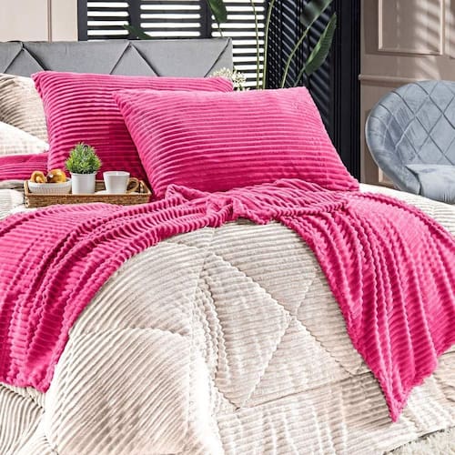 Kit perfeito para combinar com a decoração da sua cama. Confeccionado com suas cores inovadoras na nova tendência da Mantinha Canelada, matéria prima que traz cores vibrantes e listras em alto relevo, proporcionando toque super macio, conforto e luxo acompanhada de fronhas com zíper! Produzidas com carinho num rigoroso controle de qualidade, para deixar seu ambiente muito mais bonito. Essa coleção é a super novidade desse Inverno. Moderna e elegante, ela fica linda apoiada no sofá, na cama ou nas cadeiras. Aposte nessa tendência, e deixe sua casa mais charmosa! É o acessório que faltava, pois é um produto que combina com vários tipos de ambientes, deixando sua decoração mais atrativa! Confira!