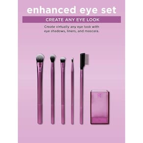 O kit de pincéis real techniques enhanced eye set é perfeito para criar looks incríveis para os olhos. Composto por 5 unidades, esse kit é extremamente versátil e ideal para qualquer tipo de maquiagem. O kit inclui os seguintes pincéis: