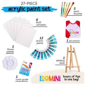 AS CRIANÇAS PODEM FAZER UMA OBRA DE ARTE Este conjunto de 27 peças de artes e ofícios para crianças de 8 a 12 anos tem tudo Você receberá 12 tintas acrílicas, 6 telas 8x10 para pintura, 5 pincéis, 1 bata de arte, 1 cavalete de arte de mesa, 1 paleta de flores e 1 guia de cores. VEM COM UM CONJUNTO COMPLETO DE TINTAS NÃO TÓXICAS E SEGURAS Nosso kit de pintura não é apenas muito divertido, mas também . As tintas acrílicas são à base de água e 100 atóxicas. Eles são muito fáceis de lavar e limpar e estão em conformidade com os padrões ASTM D4236. As cores são vibrantes e cheias de vida, assim como seu filho. NÃO SE PREOCUPE, A LIMPEZA E O ZENAMENTO É UMA BRISA Você pode estar preocupado que a limpeza de todos esses materiais diferentes de pintura, desenho e arte seja uma verdadeira chatice. O conjunto de tintas vem com uma prática bolsa de viagem de zenamento, para que todos os suprimentos possam ser zenados ordenadamente em um só lugar quando o tempo de brincadeira terminar Marca: Não Informado