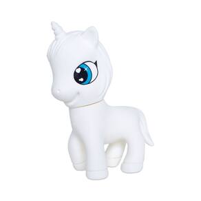 Itens inclusos: 1 unicórnio de vinil, 3 tintas guache, 1 pincel.