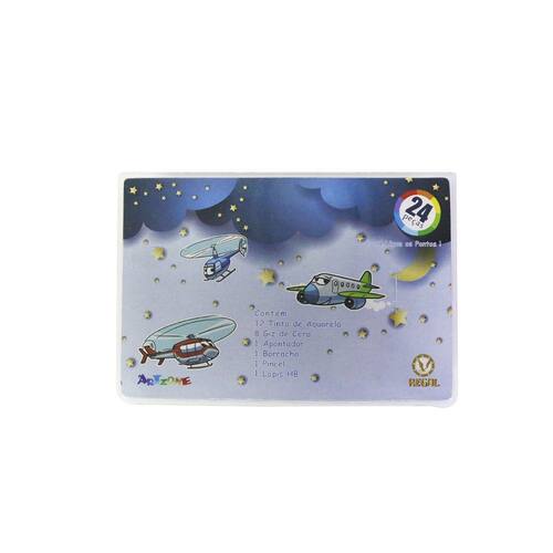 As crianças vão gostar de colorir e brincar. Esse estojo maleta escolar de 24 peças irão deixar a criatividade das crianças aflorar. É indicado para crianças a partir de 4 anos.