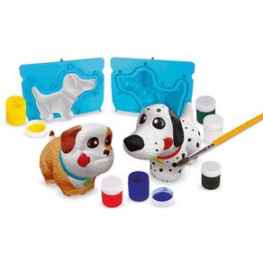O kit Pinte & Molde Pets é ideal para crianças que adoram explorar a criatividade com as próprias mãos. Com dois moldes diferentes, é possível dar forma a cãezinhos em 3D, pintando-os com as 6 tintas guache inclusas.