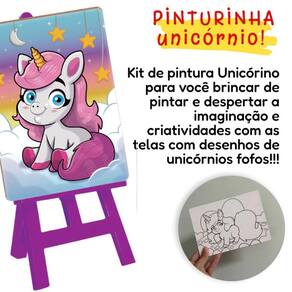 O Brinquedo Pinturinha Unicórnios é a escolha perfeita para pequenos artistas a partir de 4 anos Ele transforma a hora da brincadeira em um momento cheio de imaginação, cor e diversão. Acompanha um cavalete de plástico, tintas coloridas e 4 telas de madeira com 24 cm cada - sendo 3 com desenhos de unicórnios super fofas para pintar e 1 tela em branco para a criança criar o seu próprio unicórnio