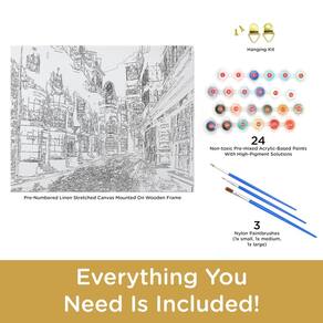 - Inclui tudo o que você precisa: vem completo com 24 latas de tinta, 3 pincéis de tinta de nylon de alta qualidade, tela pré-esticada de 40 x 50 cm em uma moldura de madeira.
