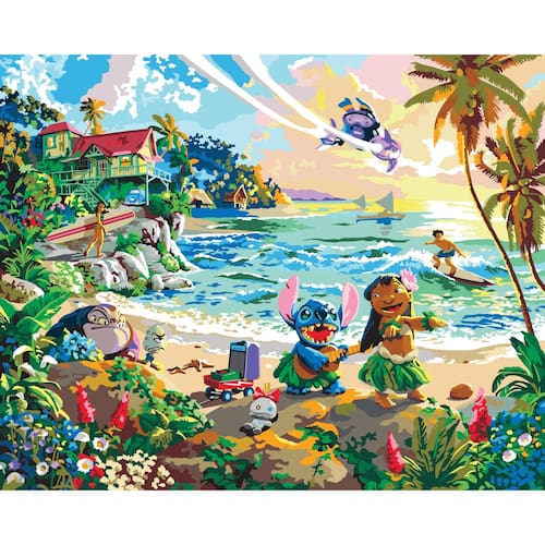Cra-Z-Art Coleção Disney Dreams Tinta Deluxe por Number Thomas Kinkade Lilo & Stitch - Disney Dreams Thomas Kinkade Lilo and Stitch Deluxe Paint by Number Art Kit vem com todas as ferramentas e suprimentos necessários para criar sua própria bela obra-prima de tela pintada de acrílico. Cada kit inclui uma tela de 50,8 x 40,6 cm, tintas acrílicas, pincéis e cabide de parede para exibição de madeira - O kit de arte Thomas Kinkade Disney Dreams Deluxe Paint by Number foi projetado para promover a criatividade e contar histórias através da arte da pintura. Você vai adorar a idílica cena de praia havaiana com Lilo e Stitch e todos os favoritos do filme; Scrump, Nani, Jumba Jookina, Pleakley, David Kawena, casa de Lilo e Nani e The Red One. Este kit de lona de arte acrílica de luxo Paint by Number dá vida à família e à amizade em sua casa - O kit de arte Thomas Kinkade Studios Disney Lilo and Stitch Paint by Number apresenta instruções fáceis de seguir que guiam o crafter através do processo de criação, garantindo um belo resultado para amar e admirar! Este kit de arte de tinta acrílica não apenas estimula a criatividade, mas também ajuda a melhorar a concentração e as habilidades motoras finas, pois cada seção da tela é codificada por cores e coordena com um pote específico de tinta acrílica. Este kit de artesanato relaxante e artístico é uma ótima maneira de desenvolver paciência e concentração enquanto você vê a beleza da tinta acrílica premium dar vida à sua tela - RoseArt Thomas Kinkade Paint by Number Art Canvas Kit é um projeto de artesanato divertido e satisfatório para nível intermediário de habilidade. Combine o código de cor na tela com o pote correspondente de tinta acrílica e use os pincéis incluídos para completar sua tela de arte Disney Dreams Paint by Number. Ótimo para aprender a misturar cores e seguir instruções detalhadas para completar uma obra-prima pessoal - Perfeito para dias chuvosos, noites divertidas em família ou qualquer momento em que você desejar um toque de criatividade, este kit promete horas de diversão envolvente e uma experiência gratificante após a conclusão. Não apenas ajuda a melhorar as habilidades motoras finas e o foco, mas também oferece uma peça de exibição radiante depois de concluída. Celebre aniversários, feriados ou surpreenda amigos e familiares com um presente que mistura criatividade com imaginação. Imagine o prazer de concluir esta obra de arte detalhada e exibi-la com orgulho. The RoseArt Disney Dreams Thomas Kinkade Deluxe Paint by Number Art - Lilo and Stitch 50 x 40 cm é perfeita para crianças a partir de 8 anos