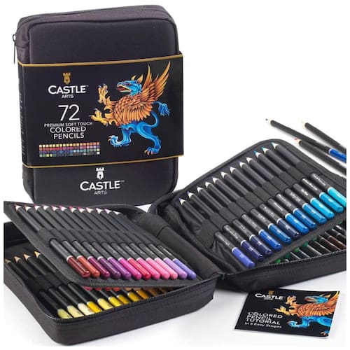 FEITO PARA FACILITAR Gama essencial de 72 lápis dispostos em famílias de cores nomeado, numerado e codificado por cores para seleção infalível basta alternar entre as camadas da capa protetora de tecido com zíper para qualquer lugar SUAVE, AINDA DURÁVEL A mais recente formulação avançada por artistas e técnicos internos resulta em núcleos com disposição suave e amanteigada que também desafia a desintegração sob pressão e mantém seu ponto de vista. UMA ALEGRIA DE USAR Cores intensamente pigmentadas, ricas e cremosas para uma cobertura suave e camadas sem esforço, mesclagem e polimento para adicionar textura e obter o tom perfeito em papel, casca de ovo, tela, madeira e muito mais. CONSTRUA SUAS HABILIDADES O tutorial desdobrável exclusivo permite que você refine suas habilidades com o lápis de cor ao recriar a impressionante ilustração do grifo na capa da manga Marca: Não Informado