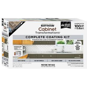 O Rust-Oleum Cabinet Transformations Midtone Tint Kit é um sistema revolucionário de revestimento de pintura de armários de cozinha do tipo “faça você mesmo” que muda completamente a aparência desatualizada ou desgastada de seus armários por uma fração do custo de compra de novos. Crie a aparência de armários feitos à mão em sua cozinha ou banheiro sem o tempo de inatividade ou a bagunça associados à substituição do gabinete. A pintura de gabinete fácil de usar não requer decapagem, lixamento ou escorvamento.