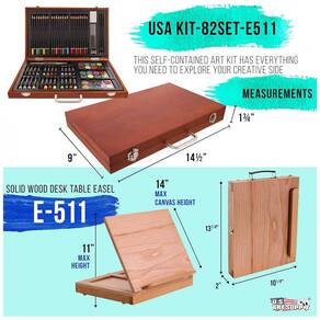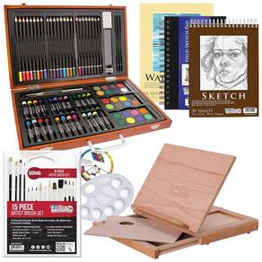 Um conjunto completo de pintura, desenho e desenho profissional de luxo de 104 peças de qualidade premium que contém tudo o que um artista precisa para criar suas obras primas Aspirantes a artistas, estudantes de arte e artistas profissionais adoram usar este divertido, e fácil de usar conjunto de pintura e desenho de arte Este conjunto é um excelente presente para aniversários e feriados. Este conjunto inclui um incrível conjunto de arte de caixa de madeira de 82 peças contendo 24 bolos de tinta aquarela de nível profissional premium, 3 bandejas de mistura, 2 pincéis, 24 cores pastel de óleo premium, 24 lápis de cor premium, 2 2B lápis de grafite, apontador de lápis, borracha e uma régua. Este conjunto de criatividade exclusivo também vem com 20 peças adicionais um bloco de papel de pintura em aquarela de 24 folhas, um bloco de papel de esboço premium de 30 folhas, um caderno de esboços de campo rígido premium de 80 folhas, 15 pincéis premium, uma paleta de pintura de plástico e um roda de mistura de cores. O conjunto também inclui um cavalete de mesa sólido Solana Beechwood profissional que possui uma gaveta de zenamento com três compartimentos para organizar tintas, pincéis, ferramentas e outros materiais de arte essenciais Marca: Não Informado