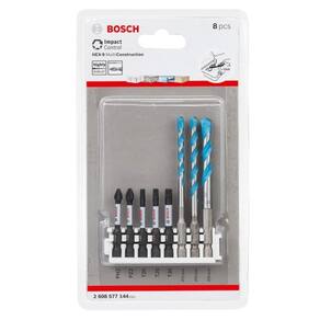Kit de pontas e brocas multi construction 8 peças hex-9 multiconstruction, 5/6/8 mm broca impact power, ph2, pz2, t20, t25, t30, 50 mm
