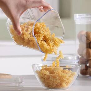 Produzidos com material resistente e durável, os potes Quanhe são fáceis de limpar, compactos e empilháveis, otimizando o espaço na sua geladeira ou armário. Seu design moderno e transparente permite visualizar o conteúdo com facilidade, trazendo mais praticidade para a sua rotina.