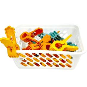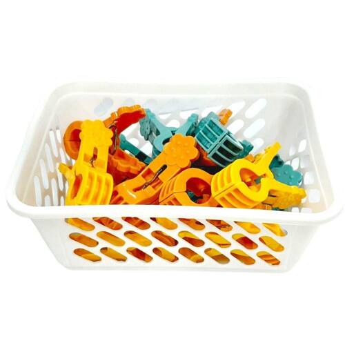 Os prendedores são leves, não enferrujam e oferecem boa fixação. Acompanha também um cesto de plástico, que permite guardar os prendedores de forma prática, mantendo tudo ao alcance e ajudando a evitar bagunça.