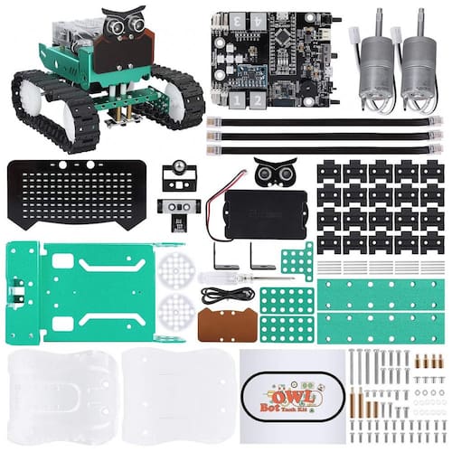 Controlador: ELEGOO Nano V4 Programação: Arduino IDE, robô coruja ELEGOO Entrada: Sensor fotoelétrico, infravermelho, sensor ultrassônico Saída: Motor Tensão LED: 7,2 8,4 v pacote de bateria de lítio de 7,4 v Vida útil da bateria: 2 horas modo de rastreamento de linha Solução de variação: sensor ultrassônico variando Motor: motor de engrenagem DC 1:78 Comunicação: USB, Bluetooth Portas I, O: A0, A1, A2, D3, D4, D11, I2C, 5V Tamanho: 233 x 133 x 104 milímetros Peso: 1302g Marca: Não Informado