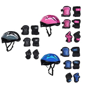 Protege a cabeça, pulsos, cotovelos e joelhos. O capacete é confeccionado em EPS um material leve e bonito.