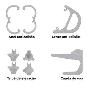 Descrição Ampliada: Garanta a máxima proteção e segurança para o seu drone DJI com o Kit de Proteção 4 em 1, compatível com os modelos DJI Mini 4K, Mini 2 SE e DJI Neo. Desenvolvido especialmente para atender às necessidades dos entusiastas de drones, este conjunto foi projetado para minimizar riscos de danos físicos e aumentar a durabilidade do equipamento, principalmente em ambientes internos, áreas com obstáculos ou em pousos e decolagens sobre superfícies irregulares. O kit é composto por quatro acessórios essenciais: Protetores de Hélice, que reduzem drasticamente os riscos de danos às hélices em colisões acidentais. Tripé de pouso estendido, que eleva o drone em relação ao solo, evitando contato direto da fuselagem com poeira, detritos ou umidade. Protetor de lente da câmera, que atua como uma tampa frontal para prevenir arranhões e sujeiras que possam comprometer a qualidade de gravação. Estrutura frontal anti-colisão, desenvolvida para absorver impactos leves e preservar a integridade das partes sensíveis do drone. Com instalação simples e sem a necessidade de ferramentas, os componentes do kit se encaixam com precisão e firmeza, sem afetar a estabilidade de voo, o tempo de autonomia ou o peso do drone de forma significativa. Este kit é altamente recomendado tanto para pilotos iniciantes quanto para profissionais que buscam um voo mais seguro, com menor risco de e custos com manutenção. Vantagens do Produto: Proteção total contra impactos leves, arranhões e colisões Aumenta a altura do pouso, evitando o contato da câmera e sensores com o solo Mantém a lente da câmera limpa e protegida durante transporte ou armazenamento Melhora a segurança de voo em ambientes fechados ou com obstáculos Design funcional e compatível com a estética dos drones DJI Itens Inclusos no Kit: 2 x Protetores de hélice lado esquerdo e direito 1 x Protetor de lente/câmera 1 x Suporte de pouso tipo tripé duas partes 1 x Estrutura frontal anti-colisão Especificações Técnicas: Compatibilidade: DJI Mini 4K / Mini 2 SE / DJI Neo Material: Plástico ABS de engenharia leve, rígido e resistente a impactos Peso Total do Kit: Aproximadamente 60 g Cor: Cinza fosco Método de Instalação: Encaixe direto sem ferramentas Não interfere no funcionamento dos sensores nem na aerodinâmica Dimensões da embalagem: 20 x 15 x 6 cm A x L x P Peso bruto com embalagem: Aproximadamente 110 g