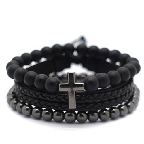 1 pulseira acrílico preto com cruz grafite de 8mm .