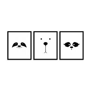 Kit De Quadros Rosto De Bichinhos 77cmx28,5cm - Cria Arte Laser Preto