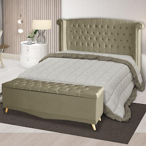 Kit De Quarto Cabeceira De Cama E Calçadeira Baú Toquio Casal 140 Cm Suede Bege Do Lar Móveis E Decoração