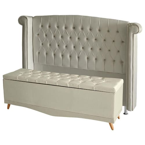 Kit De Quarto Cabeceira De Cama E Calçadeira Baú Toquio Casal 140 Cm Suede Porcelana Do Lar Móveis E Decoração