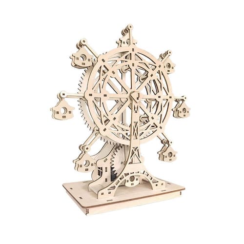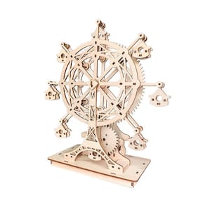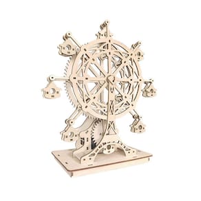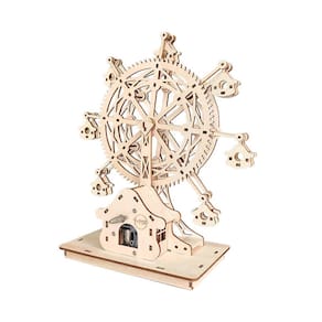 Material: Madeira Tamanho: 32x24x4cm Design complexo de roda gigante — Apresenta uma estrutura detalhada de roda gigante de madeira com gôndolas suspensas, oferecendo um display mecânico impressionante e elegante. Kit de quebra-cabeça DIY Craft — vem com peças de madeira pré-cortadas para montagem manual, tornando-se uma atividade prática divertida e educacional para adolescentes e adultos. Manivela de melodia manual — Basta girar a manivela para tocar uma música suave enquanto a roda gira suavemente, sem necessidade de baterias. Tamanho de tela grande — Com 32x24x4cm, esta caixa de música é uma peça decorativa proeminente, ideal para salas de estar, estantes de livros ou vitrines de artesanato. Presente criativo perfeito — Um presente significativo e interativo para amantes da música, engenheiros ou qualquer pessoa que goste de artesanato criativo em madeira e arte cinética.