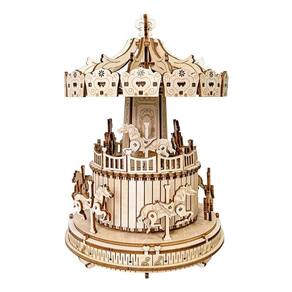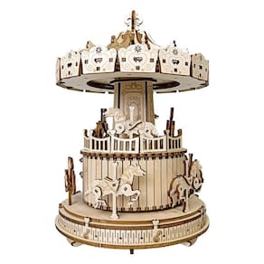 Material: madeira Tamanho: 15x15x23 cm Peso: 638 g Tema Charming Carousel — Apresenta um carrossel giratório com cavalos de design complexo e detalhes em forma de coração, evocando a alegria nostálgica do parque de diversões. Kit prático de quebra-cabeça DIY — Inclui peças de madeira cortadas com precisão para os usuários construírem à mão, oferecendo uma experiência artesanal agradável e de desenvolvimento de habilidades. Função de manivela mecânica — gire a manivela para ativar a música e o movimento — sem necessidade de baterias. Os cavalos giram suavemente em sincronia com a melodia. Resistente e decorativa — Feita de madeira durável, esta caixa de música de 15x15x23cm é uma peça de exibição deliciosa para quartos, estantes de livros ou mesas de estudo. Perfeito para presentear e aprender — Um presente criativo e envolvente para crianças, adolescentes ou adultos que gostam de quebra-cabeças, música e arte decorativa feita à mão.