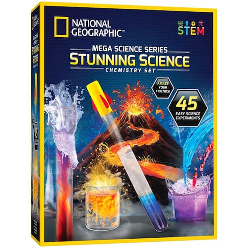 Conjunto de química impressionante da NATIONAL GEOGRAPHIC — Mega kit científico com 45 experimentos fáceis — Crie um vulcão e lance um foguete, projetos STEM para crianças de 8 a 12 anos, brinquedos científicos (exclusivo da Amazon) — UM KIT CIENTÍFICO QUE INSPIRA — Seus filhos se divertirão por horas enquanto exploram as reações efervescentes e vibrantes que criam, assim como um verdadeiro cientista em um laboratório! - UM TOTAL DE 45 EXPERIMENTOS - Construa e exploda um vulcão, crie um gêiser, lance um foguete e cause reações químicas incríveis! Cada experimento é fácil de conduzir e muito divertido! - INSTRUÇÕES FÁCEIS DE SEGUIR - O guia de experimentos deste kit contém instruções para crianças, com ilustrações para cada etapa e uma visão fascinante das reações químicas. - HANDS-ON STEM - As crianças aprenderão o processo científico, os fundamentos importantes da química e como conduzir experimentos com segurança. Este kit científico serve como um importante trampolim para o sucesso do STEM! - BRINQUEDOS EDUCACIONAIS DE ALTA QUALIDADE - Temos orgulho de fabricar brinquedos científicos práticos da mais alta qualidade, e todos os nossos produtos contam com um serviço excepcional. Se sua experiência não for excelente, avise-nos e faremos as coisas da maneira certa!