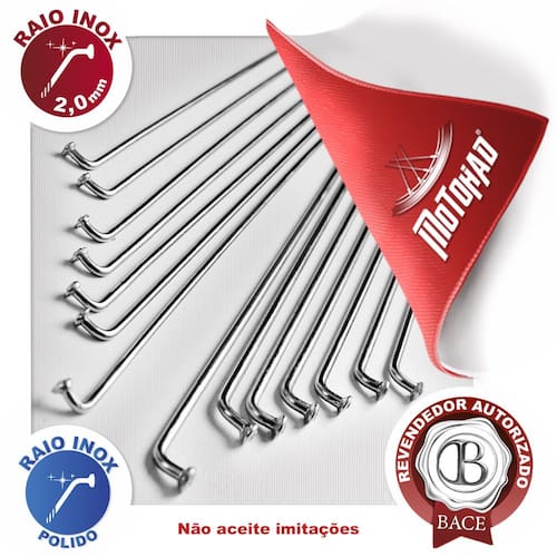 Os raios são produzidos com a liga inox AISI304 e passam por um polimento eletrolítico que dá mais durabilidade e brilho.