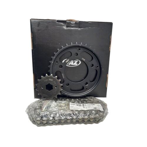 Embalagem: 01 Kit Transmissão Completo. ( Coroa, Pinhão e Corrente )