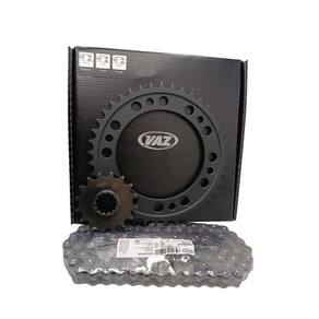 Embalagem: 01 Kit Transmissão Completo. ( Coroa, Pinhão e Corrente )