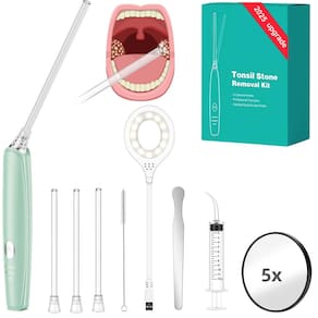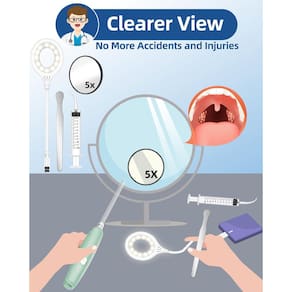 - Veja e limpe com precisão: equipado com um espelho de aumento de 5X e uma lâmpada oral brilhante que é 150% mais brilhante do que as alternativas, nosso kit de remoção de pedras de amígdala elimina as adivinhações da remoção da pedra da amígdala iluminando e visando pedras de amígdalas com precisão!