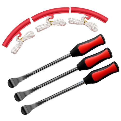 11,5" x:lix:li Ferramentas de troca de pneu de motocicleta kit de reparo de alavancas de pneu de bicicleta com 3 protetores de aro - ?GARANTIA?100% de garantia de satisfação. Todas as ferramentas ASOOLL vêm com 3 anos de garantia, se você encontrar algum problema de qualidade em uso, sinta-se à vontade para entrar em contato conosco, nós lidaremos com isso dentro de 24 horas. Compre com confiança. - ?Alavancas de pneu de qualidade premium?Estas colheres de pneu são feitas de aço endurecido resistente à ferrugem com acabamento cromado polido, resistente e durável. O cabo ranhurado ergonômico oferece conforto e segurança, o que torna menos propenso a escorregar de suas mãos ao colocar um novo pneu e tubo com lubrificante ou sabão. - ?Fácil de utilizar?Conjunto de 3 colheres de pneu vermelhas de 29 cm não são apenas fáceis e fáceis de arrancar pneus, mas também fortes o suficiente para puxar a conta do pneu sobre o aro sem dobrá-los ou quebrar. - ?Protetores de aro incluídos?Vem com bainhas protetoras de aro para proteger seus aros de riscos e arranhões. Nossos protetores de aro são duráveis, fortes e não danificados facilmente. Tem cordas que podem puxá-los de volta se eles caírem dentro do pneu. - ?Aplicação?Perfeito para motocicleta, cadeira de rodas, bicicleta, scooter e outras mudanças de pneu de tamanho pequeno. Não serve para pneus de carro.