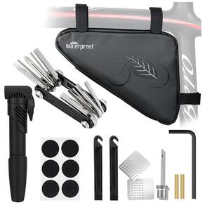 Conjunto de reparo de bicicleta essencial O kit de reparo portátil de bicicleta WOTOW inclui uma bolsa de ção de tubo superior à prova dágua, uma mini bomba de bicicleta de 120psi, uma ferramenta de chave de reparo de bicicleta multifuncional 11 em 1, algumas barras de pneu de bicicleta e remendos. Todos os acessórios podem ser guardados na bolsa de bicicleta montada debaixo do quadro, o que torna a sua condução e viagem sem problemas e com facilidade. Bolsa de ção grande à prova dágua A bolsa de triângulo de bicicleta adotou poliéster 600D com revestimento de PU, que é resistente à água e às intempéries e fácil de limpar. Mini bomba de inflação rápida Sistema de pressão de reforço embutido, a bomba de pressão máxima de 120 PSI permitindo bombear pneus furados com menos força. Com o adaptador de válvula sob a alavanca de trava, o inflador se encaixa na boca da válvula Schrader e Presta. E a agulha esportiva anexada também pode inflar bolas esportivas e anéis de natação, além das bicicletas e carrinhos normais de montanha e estrada. Ferramenta de reparo multifuncional 11 em 1 A ferramenta de reparo de bicicleta multifuncional dobrável WOTOW é feita de aço inoxidável de alta qualidade, resistente e durável, inclui chave Allen de 1,5, 2, 2,5, 3, 4, 5, , slot e Chave de fenda cruzada, T25 Torx, gancho de chave. O tamanho mini e compacto facilitam o uso e o transporte Marca: Não Informado