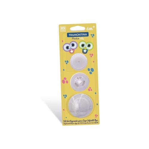 Kit De Reposição Monsterbaby Para Copo Infantil Tramontina 3 Peças Tramontina Kit de Reposição Monsterbaby para Copo Infantil Tramontina 3 Peças Tramontina - Com o Kit de Reposição Monsterbaby para Copo Infantil Tramontina 3 Peças da linha Monsterbaby o seu pequeno não fica sem o seu copinho favorito. O kit conta com bico e diafragma produzidos em silicone, válvula corta-gotas em polipropileno. Com o sistema corta-gotas, fica ainda mais fácil e seguro do seu filho tomar suas bebidas favoritas, pois funciona controlando a quantidade de líquidos que sai do bico. E o melhor de tudo é que o produto livre de BPA. Com a linha Monsterbaby tudo fica mais divertido.OrientaçõesBico e diafragma de silicone. Válvula corta-gotas de polipropileno. O sistema corta-gotas funciona controlando a quantidade de líquidos que sai do bico. Produto livre de BPA. O Bisfenol-A (BPA) é um componente químico na produção de alguns plásticos como o Policarbonato. Este componente pode ser prejudicial à saúde e por isso a Tramontina não o utiliza em seus produtos.ObservaçõesRecomenda-se usar estes produtos para crianças com 6 meses ou mais. Antes da primeira utilização, lave as peças com água morna, esponja macia e detergente neutro. Seque bem antes de guardar. O sistema de corta-gotas funciona controlando a quantidade de líquidos que sai do bico, porém, caso o copo fique virado com o bico para baixo, algumas gotas poderão sair pelos orifícios. Depois de cada utilização, separe todas as partes, lave e seque. Não recomendamos usar estes produtos em máquinas de lavar louças e micro-ondas. Com o os materiais poderão absorver a coloração dos líquidos. Para descarte dos produtos e embalagens siga as orientações de reciclagem vigentes.Características GeraisEAN137891112184084DUN1417891112184081NCM3924.10.00Peso Líquido0,0200 kg.Peso Bruto0,0300 kg.Metragem0,000782 m.Dimensões Embalagem (Compr. X Larg. X Alt.)40x 85x 230 mm.Dimensões Produto (Compr. X Larg. X Alt.)40x 85x 230 mm. Características Gerais do Produto: Garantia: - 1 Ano