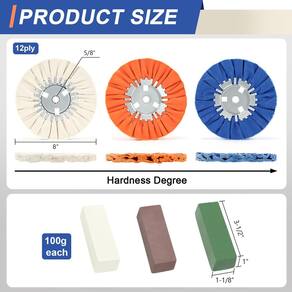 Kit de polimento de vias aéreas de 20,32 cm, 12 camadas, kit de 6 peças Este kit de roda de polimento de vias aéreas e compostos é adequado para rebarbadora angular de 20,32 cm de diâmetro de 5/20.3 cm. O pacote inclui 1 roda branca de polimento das vias aéreas para polimento fino. 1 roda de polimento das vias aéreas laranja para polimento médio. 1 roda de polimento das vias aéreas azul para polimento grosso. 1 composto branco. 1 composto marrom. 1 composto verde. - [Bom design]: esta roda de polimento é projetada para polir por mais tempo e mais frio do que os lustres padrão, projetada para polimento grosso. - [Alta qualidade]: tecido de alta qualidade, o anel central galvanizado é resistente à corrosão e durável. Recomendamos uma rebarbadora de 20 cm que funcione na faixa de 3.000-6000 com um ponto ideal a 3.500 RPM. - Amplamente utilizado: utilizado para polir peças de veículos como rodas, tanques, para-choques, para-lamas, etc. Ou qualquer outro acabamento de metal/parte de alumínio, latão, cobre e aço inoxidável. Recomendado para uso com compostos de polimento. - [Fácil de usar]: Estas rodas de polimento funcionam perfeitamente com compostos de polimento, ligam um moedor, broca ou motor e pressionam o composto contra a roda. o calor e a fricção transferirão o composto para a roda de polimento. - [Dimensão]: Diâmetro da roda de polimento das vias aéreas: 20,3 cm, orifício interno do mandril: 5/20.3 cm, 12 camadas, composto: 100 g.