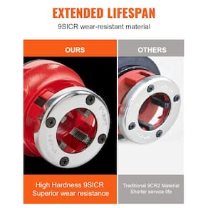 - Durabilidade de longa duração: construído com uma forte cabeça de placa de dobradiça de ferro fundido e material 9SICR atualizado nos dentes da cabeça da matriz, este kit de rosqueador de tubos resiste ao desgaste e oferece desempenho excepcional ao longo do tempo.
