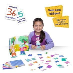Kit de roupinhas Coleção Fazendo Arte - Toyster Divertido kit de roupinhas com três bichinhos para vestir com mais de 30 peças de roupas Experimente diferentes combinações, decore com glitter, aprenda a fazer novas peças e brinque com os bichinhos em diferentes opções de cenários Selo Inmetro: REGISTRO: 005292/2022