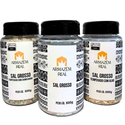 O kit contém: - 1 uni sal grosso tradicional 500g -1 uni sal grosso com chimichurri 500g -1 uni sal grosso com alho 500g Os cristais grandes e irregulares do sal grosso são enriquecidos pelo aroma e sabor característicos do alho, criando uma mistura versátil e saborosa. Esta combinação é frequentemente utilizada para temperar churrascos, assados, grelhados e até mesmo legumes assados, proporcionando um toque defumado e um perfil de sabor marcante. Ingredientes: sal grosso, alho e chimichurri.