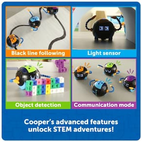 À medida que as crianças experimentam sequências de programação, estão desenvolvendo raciocínio lógico e habilidades de resolução de problemas que se transferem para outras disciplinas. Feito de plástico durável e fácil de limpar, o Cooper é construído para resistir a anos de uso em sala de aula. Se os alunos trabalham individualmente ou colaboram em grupos pequenos usando os planos de aula fáceis de seguir, eles desenvolverão confiança em conceitos STEM enquanto se divertem. Pais e professores relatam consistentemente que o Cooper mantém a atenção por mais tempo do que o esperado, com as crianças descobrindo novas funcionalidades e desafios semanas após desembalar.