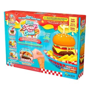 Transforme-se em um chef de cozinha com o Kit Slimy DIY Street Food Crush - Hamburger! Misture e modele ingredientes para criar hambúrgueres de slime superrealistas. Decore com toppings personalizados e esmague para uma sensação cremosa irresistível. Estimula a criatividade e as habilidades motoras, oferecendo uma experiência sensorial divertida e educativa para as crianças.