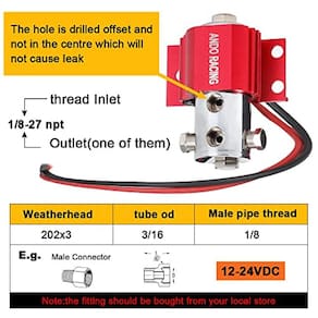 Características: 1. De alta qualidade, o travamento do freio é feito de aço inoxidável, que pode ser para o freio dianteiro ou freio traseiro do veículo. 2. Adequado para sistema elétrico de 12-14 V. Esta válvula solenoide de alta qualidade pode ser para frenagem dianteira ou traseira de veículos. Pode lidar com picos de pressão de até 1000 psi 3. Pode controlar freios dianteiros e traseiros síncronsos. Mantenha a pressão de frenagem dos freios dianteiros e traseiros para manter o veículo na encosta ou na linha de partida do reboque. Ao travar os pneus dianteiros e usar o sistema para soltar o freio traseiro, a chama pode ser facilmente desligada4. Elimine qualquer consumo de energia da bateria quando o veículo ou o navio não estiver em uso Cor: Vermelho Tamanho do pacote: 6,5 x 3,94 x 3,54 polegadas Peso do produto: 1,76 libras Nota: 1. Esta trava de fio será instalada no sistema de freio dianteiro (para veículos de tração traseira) para corrida de arrasto ou burnout. Ou, no sistema de freio traseiro de um veículo de tração dianteira. Se instalada corretamente, a válvula solenoide não impedirá a frenagem normal. 2. Aplicável à maioria dos freios/drag racing/suportes de montanha 3. A trava do cabo de freio é projetada como um sistema mecânico independente, o que significa que não falhará devido a vazamentos ou perda de pressão. Lista de produtos:1 x Conector de fusível embutido1 x luz indicadora1 x interruptor de ação snap2 x 1/8-27 NPT amarelo adaptador de cobre3 x parafusos de montagem